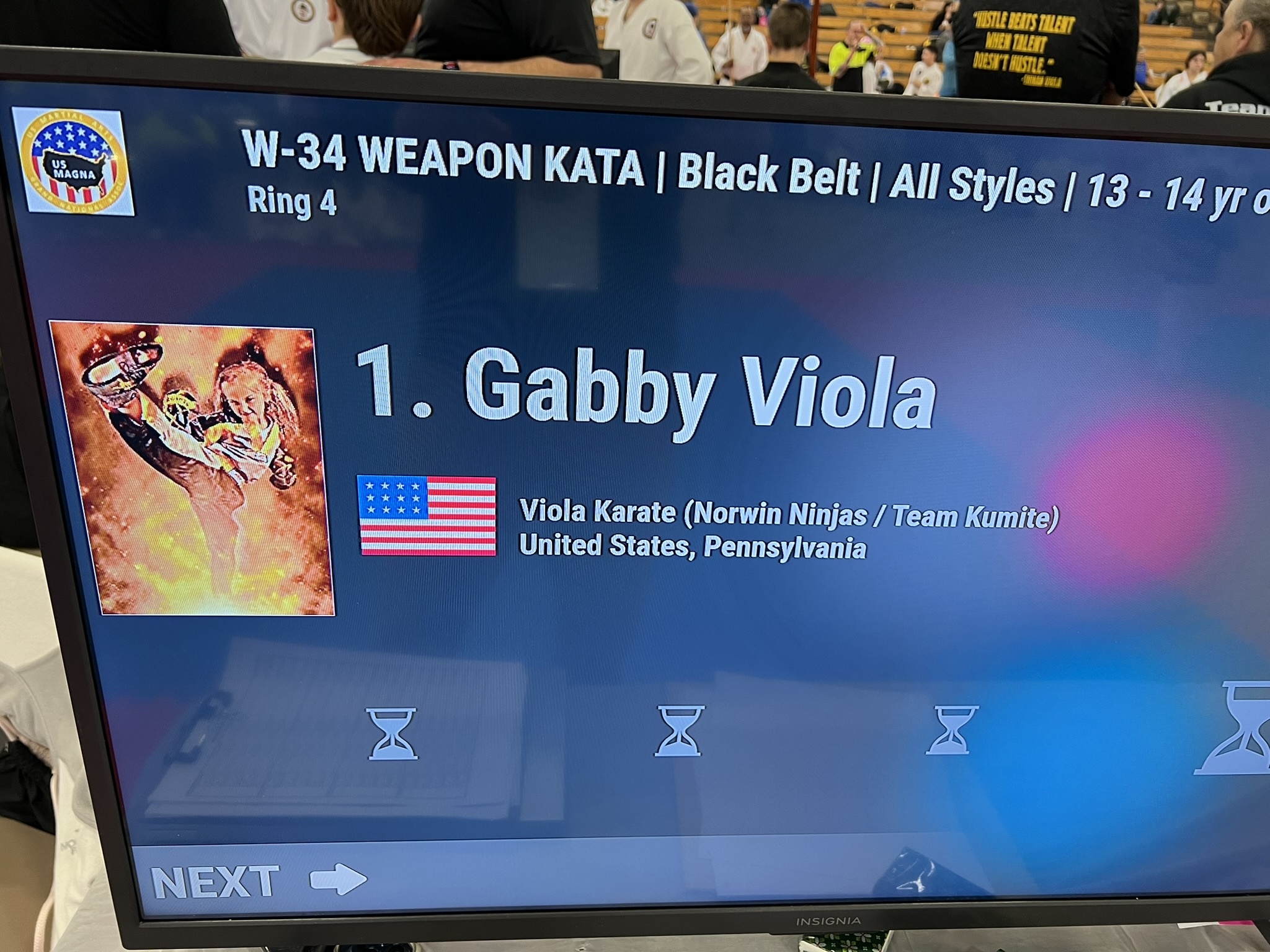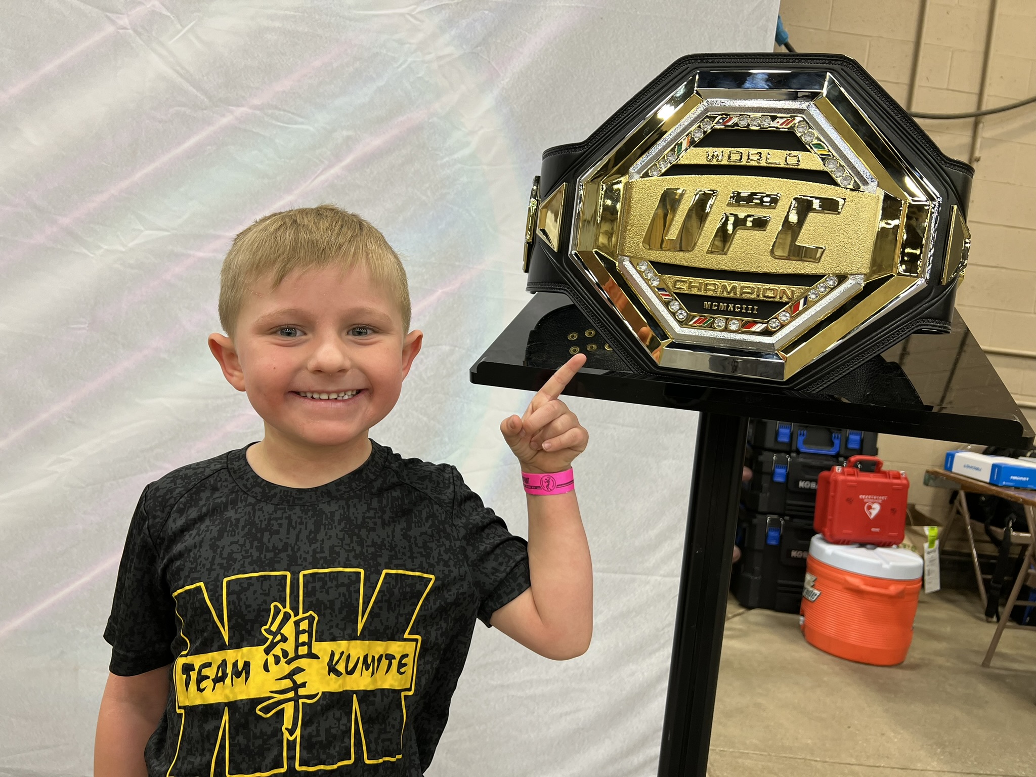 Sensei was a director for Combat Sports at this year’s festival. Sensei Cameron was able to win the Overall Grand Championship in kata (forms) and kumite (sparring), a feat that earned him a one-on-on live performance, just for Arnold Schwarzenegger. Arnold called Cameron, “A true champion and inspiration to youth.” Gabby won Jr. Black Belt Grand, Sammy the Woman’s Kata Grand, and Lucy the Woman’s Sparring Grand.. making it a clean sweep for Team Kumite!
